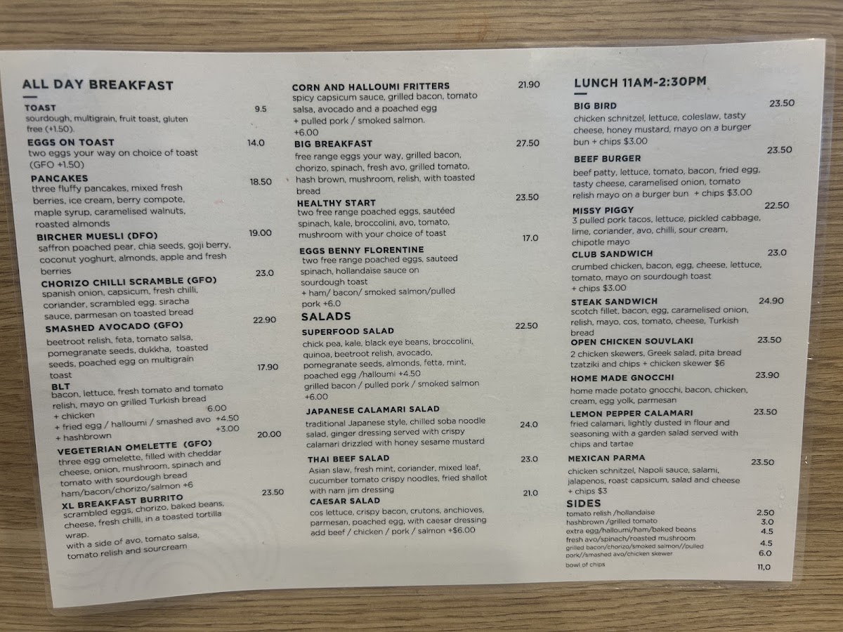 As the day goes on, the lunch menu comes alive with hearty options like the Big Bird chicken schnitzel burger, packed with fresh ingredients and paired with crispy chips that make for a satisfying crunch. Alternatively, the Missy Piggy pulled pork tacos offer a beautiful balance of flavors with zesty lime, creamy avocado, and a touch of chili for those that enjoy a kick.