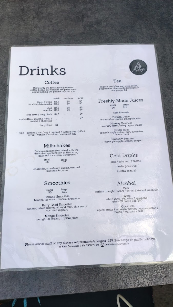 Welcome to Two Little Monkeys, a beloved café nestled at 38 E Concourse, Beaumaris VIC 3193. This charming spot is not just a place to grab your morning fix; it's an experience that delights the senses and warms the heart, making it a must-visit for both locals and travelers alike.